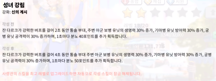 잔다르크를 스킬을 보시면 키워야되는 이유를 알게 되실겁니다.