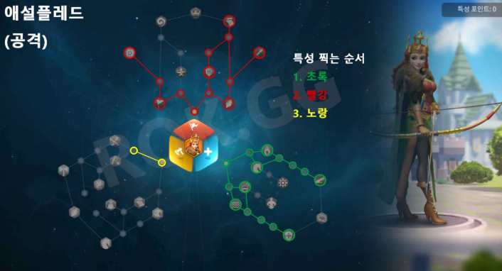 대규모 전쟁에서 지원 특성을 찍고 서포터 역할을 하는 조합입니다.