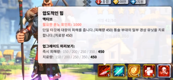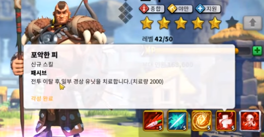 1. 야만인 특화 스킬 보유 (중립몹 피해량증가 최대 35%, 치료량 450 )