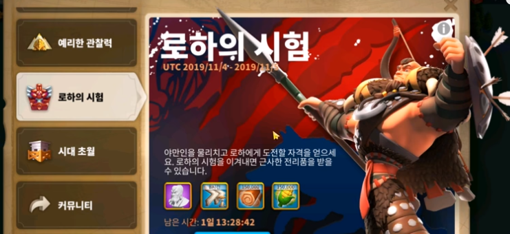 로하는 로하의 시험이라는 이벤트로 획득 가능한 사령관으로 아래 이벤트가 생기면 열심히 야만인 사냥을 통해 얻으실 수 있습니다.